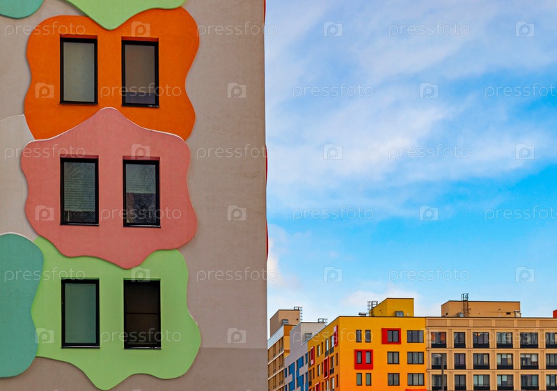 Красивые фасады современного жилого дома. Жилой комплекс В лесу, Москва, Россия