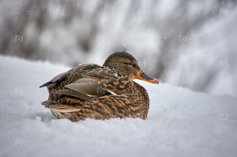Утка на снегу крупным планом