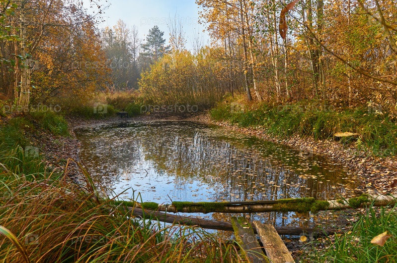 Пруд с опавшей листвой, осенний пейзаж