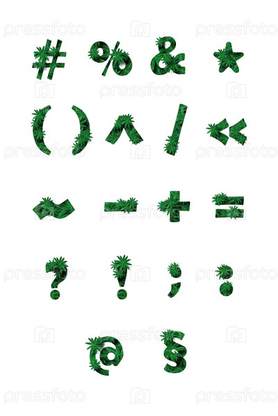 Символы: математические, синтаксические и другие, выделенные на белом фоне. Стилизован под коллаж из фотографии листа цветка люпина