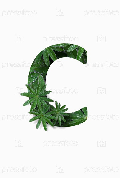 Русская заглавная буква алфавита С, выделенная на белом фоне. Стилизован под коллаж из фотографии листа цветка люпина