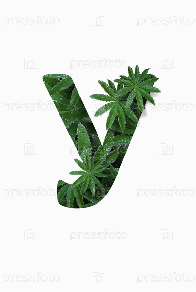 Русская заглавная буква алфавита У, выделенная на белом фоне. Стилизован под коллаж из фотографии листа цветка люпина