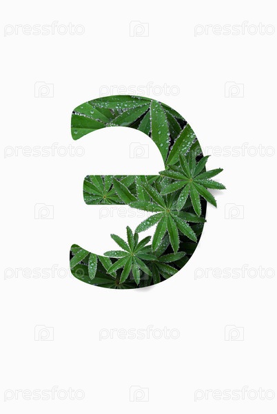 Русская заглавная буква алфавита Э, выделенная на белом фоне. Стилизован под коллаж из фотографии листа цветка люпина