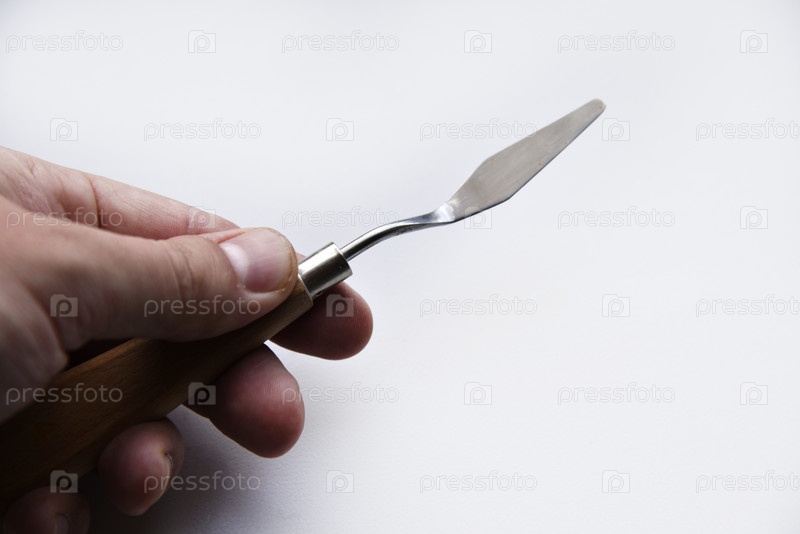 Мастихин № 4 художественный железный с деревянной ручкой на белом фоне. Малярный инструмент художника