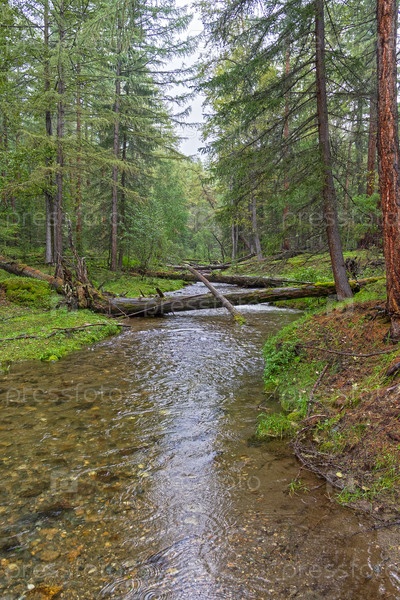 Красивый прозрачный ручей в сибирской тайге. Бурятия, Россия