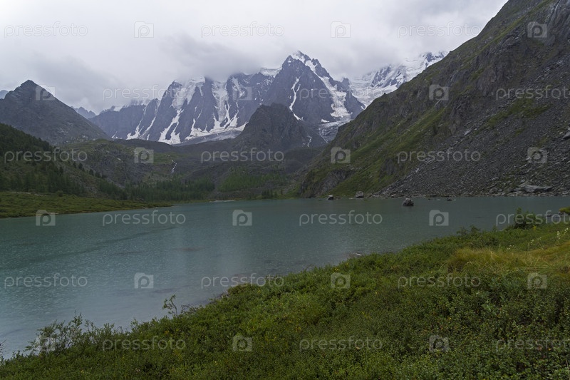 Верхнее Шавлинское озеро в дождливый день. Август, Горный Алтай
