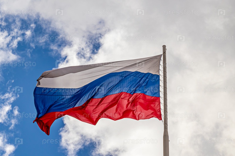 Российский флаг развевается на флагштоке при сильном ветре. символ патриотизма. Тула, Россия