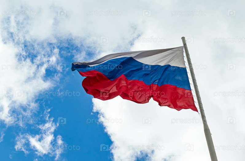 Российский флаг развевается на флагштоке при сильном ветре. символ патриотизма. Тула, Россия