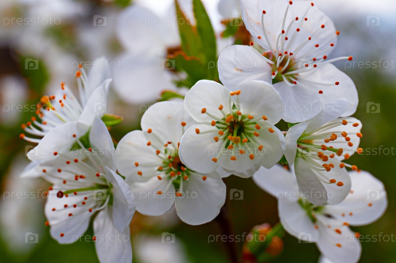 Вишни в цвету на солнечном фоне. Красивый весенний фон природы с веткой цветущей сакуры. крупным планом