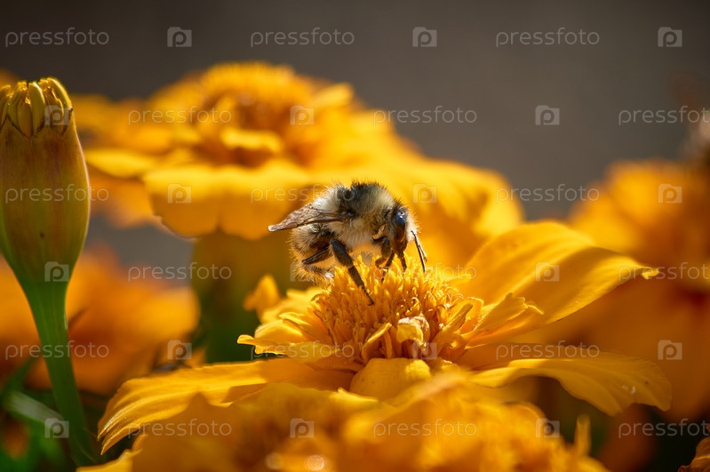 Шмель собирает нектар на желтом цветке