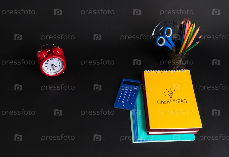 Школьные принадлежности на черном фоне