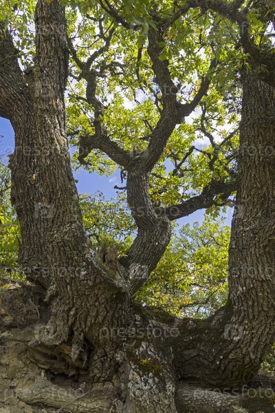 Дуб в лесу на горном склоне. Крым