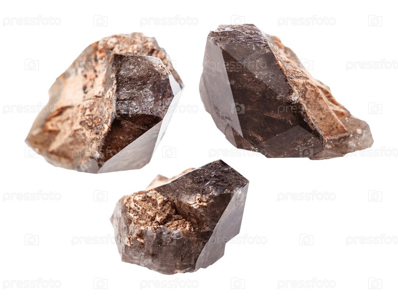 Набор дымчатых кварцевых кристаллов мориона, изолированные