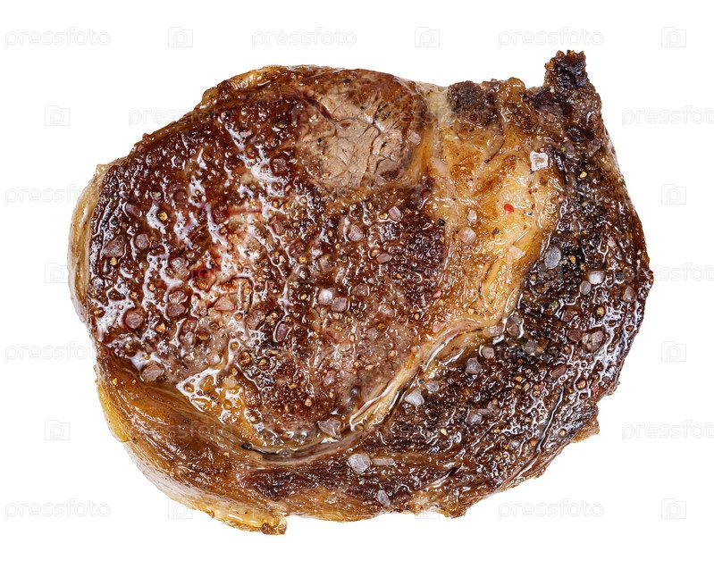 Изолированный вид сверху на приготовленный стейк из говядины на ребрышках