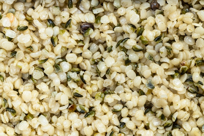 Фон - много ядер семян конопли