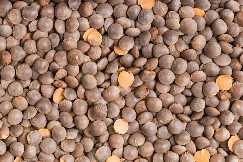 Фон - сырая коричневая неочищенная красная чечевица
