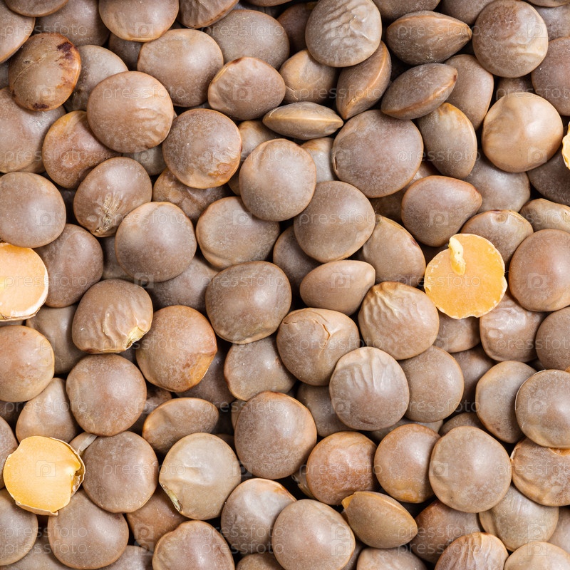 Коричневая неочищенная красная чечевица крупным планом