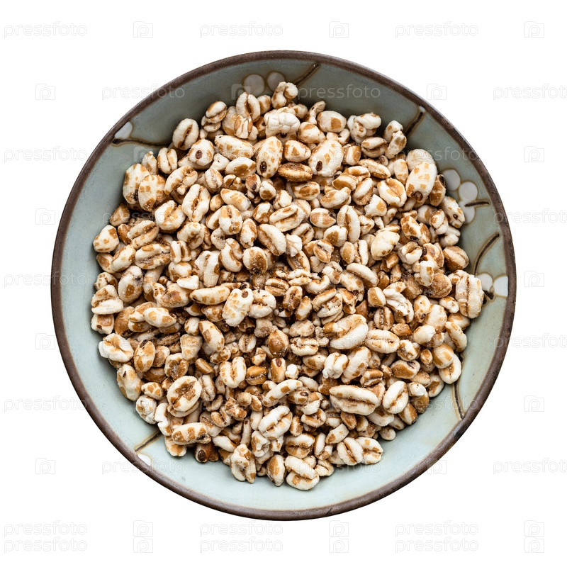 Вид на пышные зерна пшеницы эммер фарро в миске