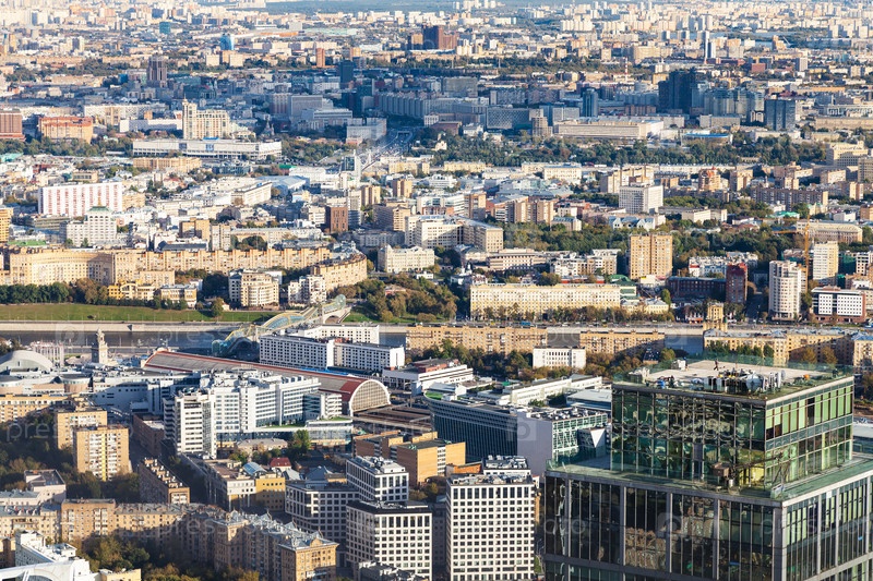 Вид сверху на центр Москвы с набережными