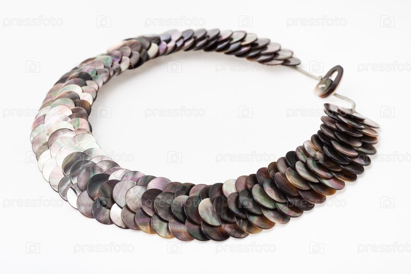 Воротник из полированных дисков натурального перламутра на белом