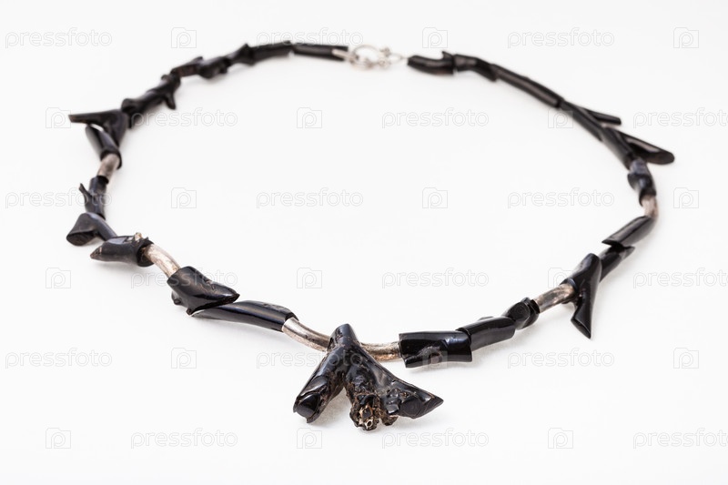 Колье из полированных черных коралловых веточек на белом