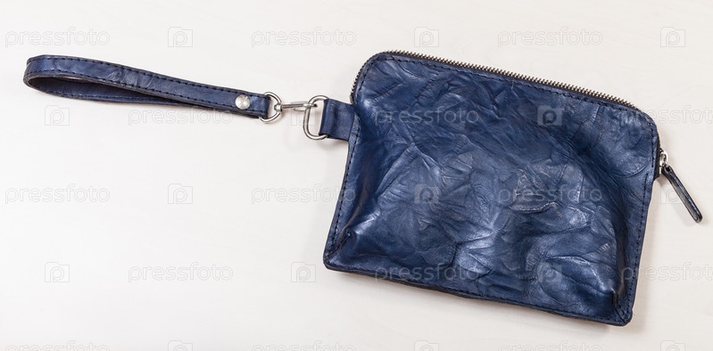 Закрытая маленькая сумочка на запястье на бледном столе