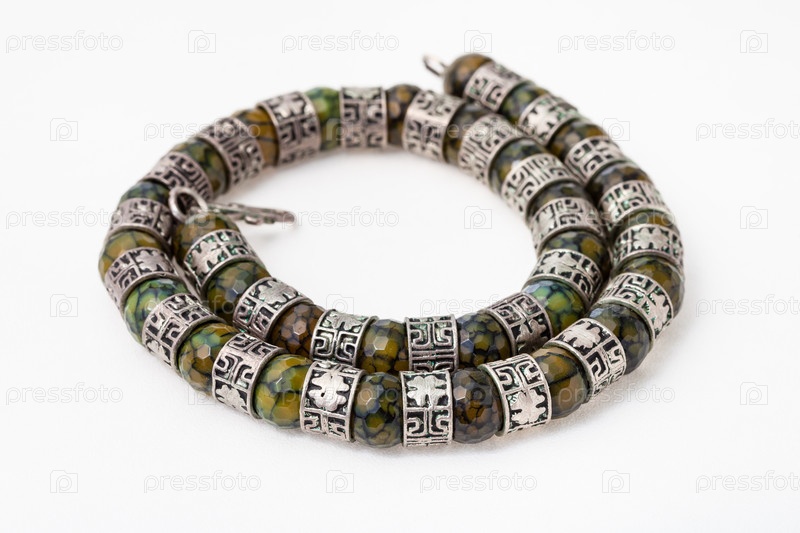 Спиральное ожерелье из ограненных жадеитовых драгоценных камней на белом