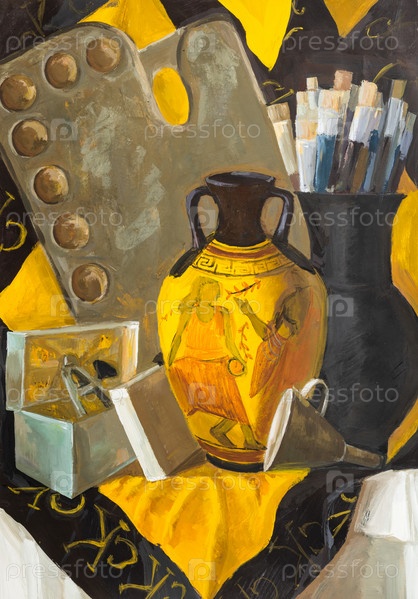 Натюрморт с греческой вазой, палитрой и кистями