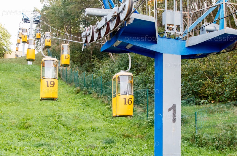 Канатная дорога в курортном городке в солнечный осенний день