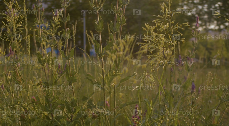 Трава в раннем вечернем солнце. Фон природы