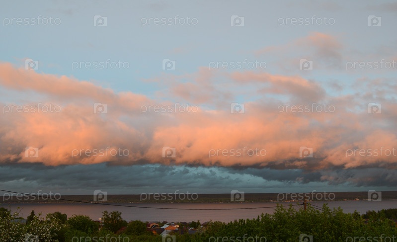 Красивый нежный закат в деревне весной