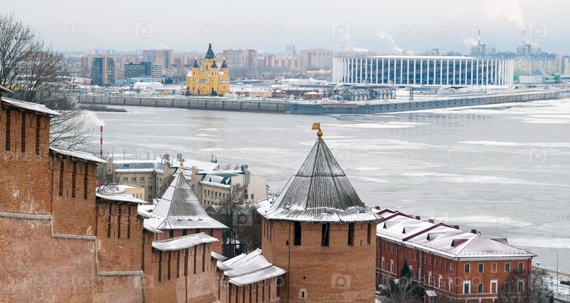 Нижегородский кремль на фоне обновленной Окской набережной на Стрелке