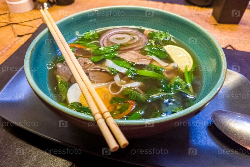 Азиатский суп с говядиной, лапшой и яйцом, похожий на фо бо или рамен