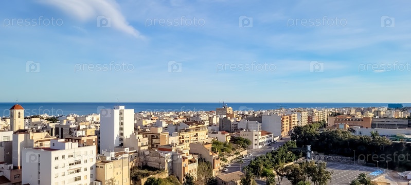 Средиземное море. Курортный город на берегу моря. Вид сверху