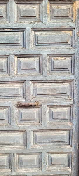 Старая деревянная дверь со следами старой краски и ржавой ручкой