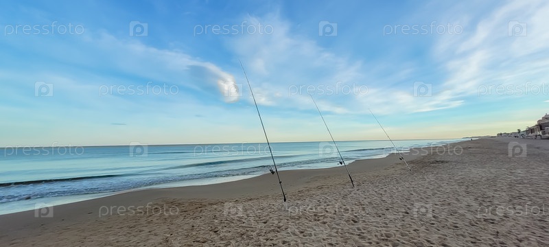 Средиземное море. Пустой пляж зимой, людей нет