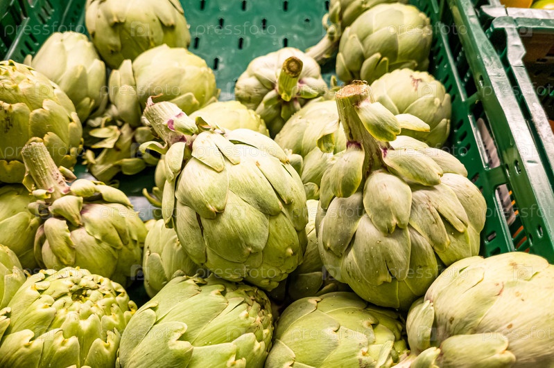 Свежие артишоки в коробке в супермаркете
