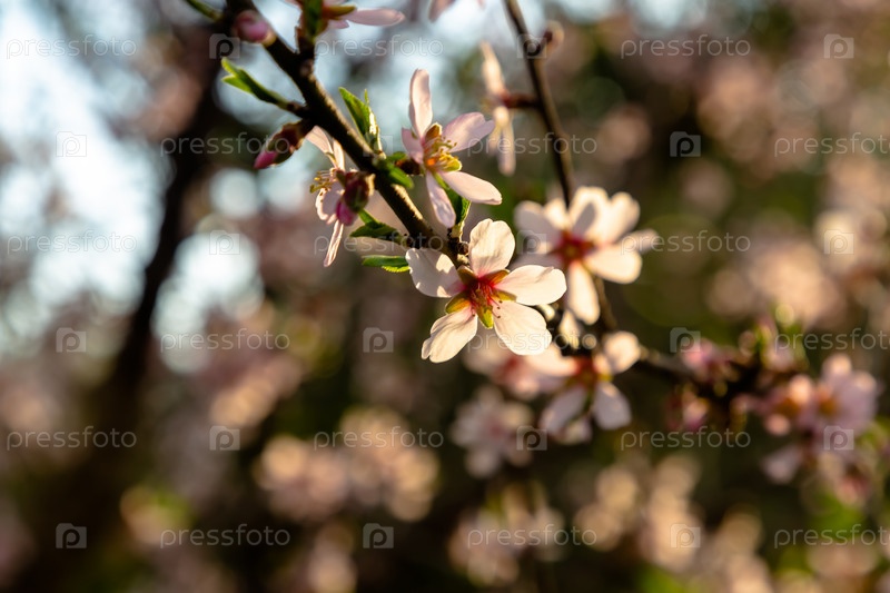 Розовые миндальные цветы на дереве, Испания зимой