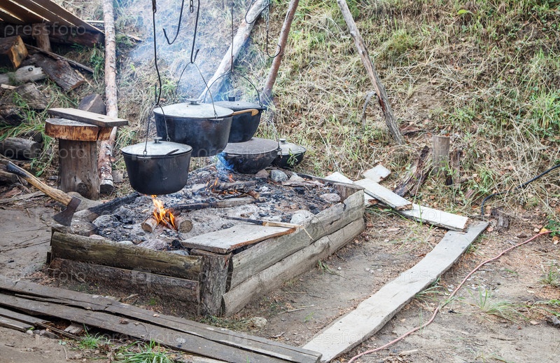 Три железных горшка над огнем