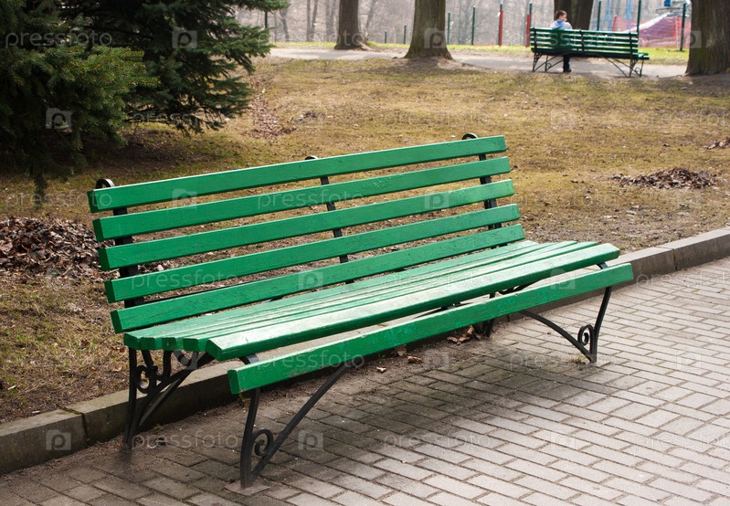Зеленая скамейка в общественном парке