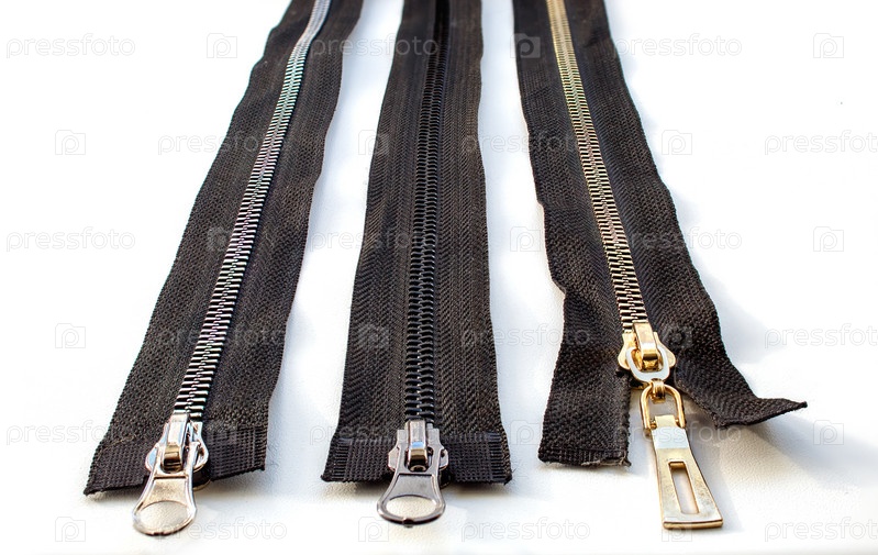 Три металлические закрытые молнии крупным планом