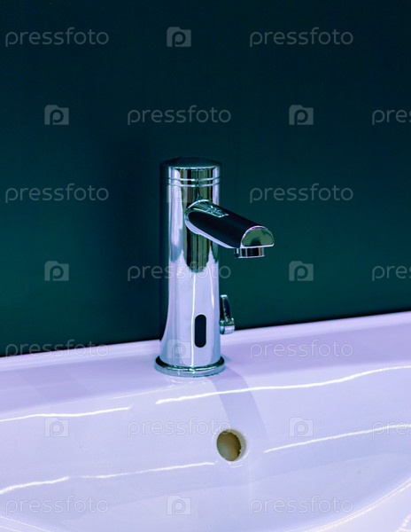 Современный дизайн водопроводного крана для мытья рук. крупным планом