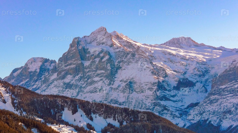 Горный пейзаж с видом на вершины Веттерхорна. Гриндельвальд, Швейцария