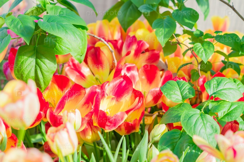 Крупный план цветущих весенних тюльпанов оранжевого цвета