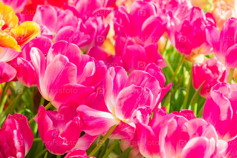 Крупный план весенних цветущих тюльпанов в солнечный день