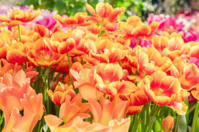Крупный план цветущего весеннего тюльпана оранжевого цвета
