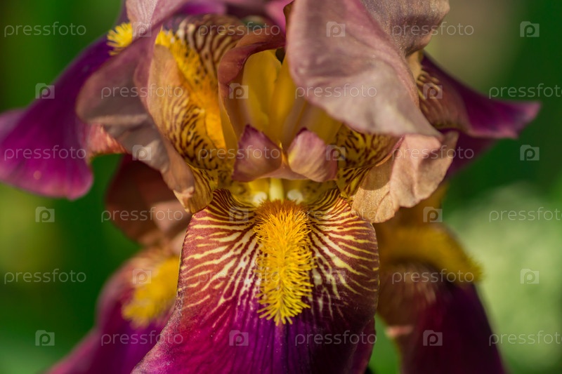 Красивый цветущий бордовый цветок ириса на фоне природы