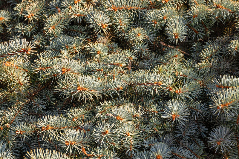 Голубые веточки стройной молодой елочки. Новогодняя елка. Рождественская елка. крупным планом