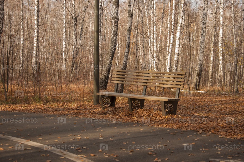 Желтый лист упал на садовую скамейку