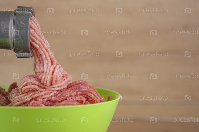 Мясорубка с фаршем на деревянном столе